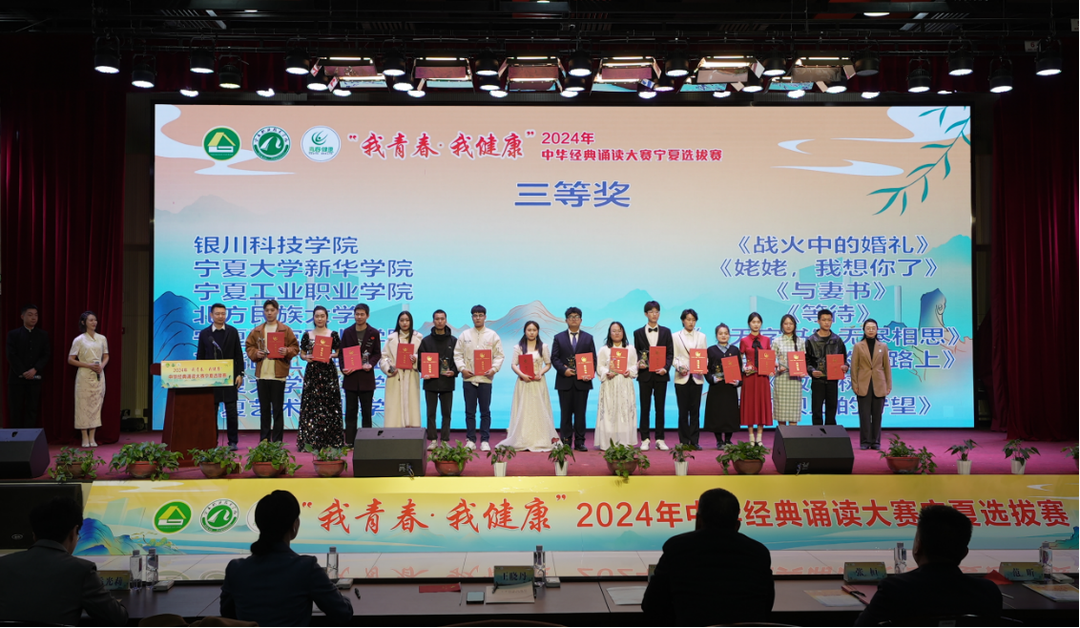 2024年3月17日由自治区卫生健康委、自治区教育工委、自治区教育厅、自治区计划生育协会主办,宁夏职业技术学院(宁夏开放大学)、西夏区卫生健康局承办的全区“我青春·我健康”中华经典诵读大赛圆满落幕。