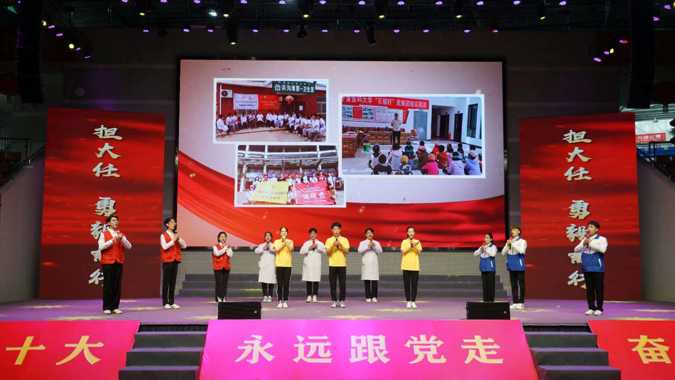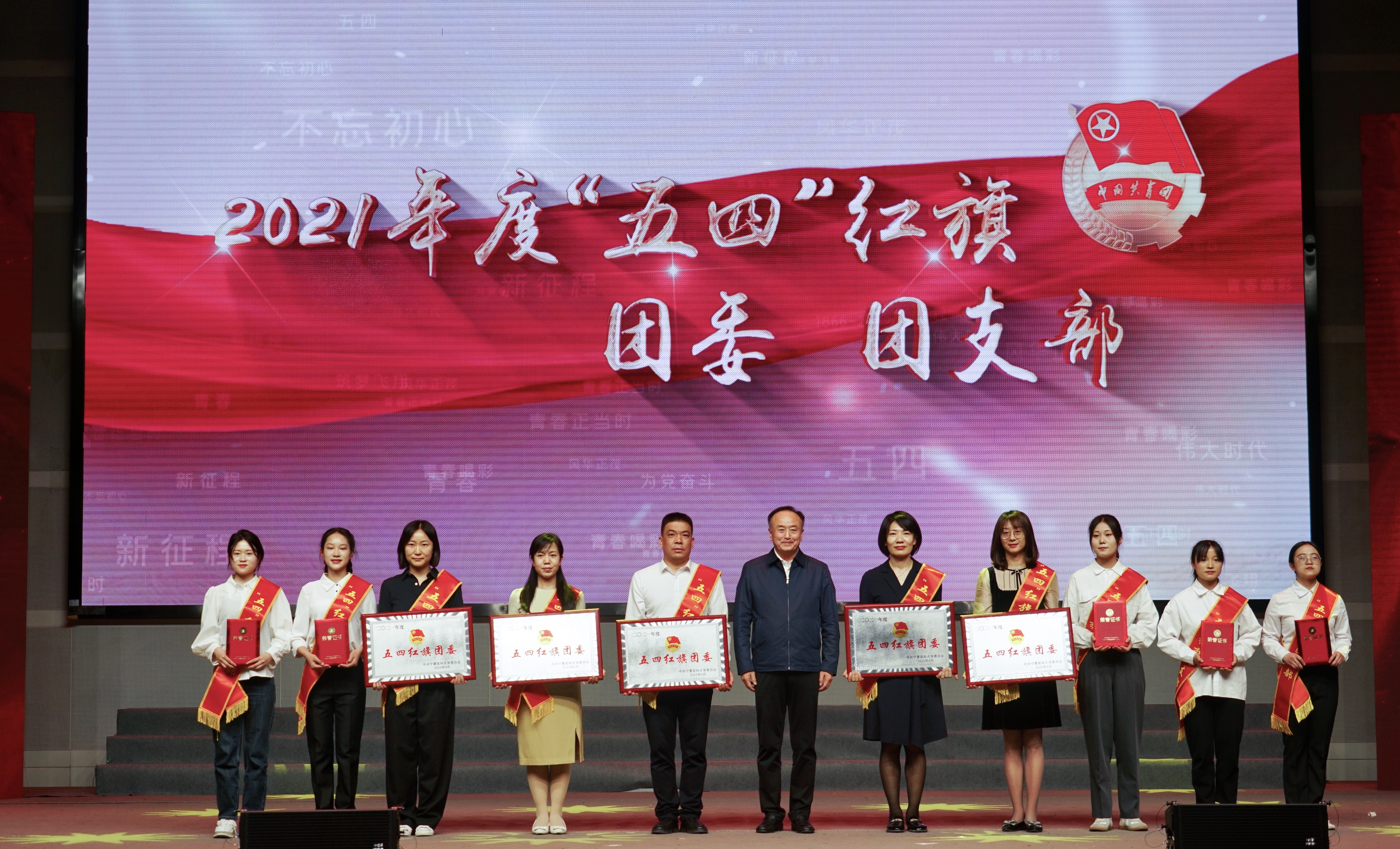 今年是党的二十大和自治区第十三次党代会召开之年,迎来中国共青团成立100周年,5月4日下午,由学校团委主办、临床医学院团委承办的“喜迎二十大 永远跟党走 奋进新征程”澳门十大信誉好的网站2022年“五四”表彰暨青春诗会在雁湖校区弘毅体育馆隆重举行。全体校领导出席本次活动,各单位党政负责人,各学院主管学生工作的副书记,各基层团委(团总支)书记、学生代表参加了活动。