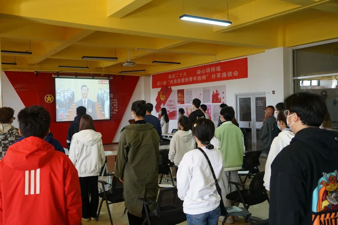 在观看直播过程中,大家庄严肃穆,认真听取习近平总书记作的二十大报告,报告字字千钧,条条入心,句句震撼,段段深刻,件件期盼。铿锵有力的话语在每位同学的心中深深印刻,让同学们更加深刻理解了中国的“非凡十年”,十年跋涉、十年笃行,大道如砥、行者无疆。
