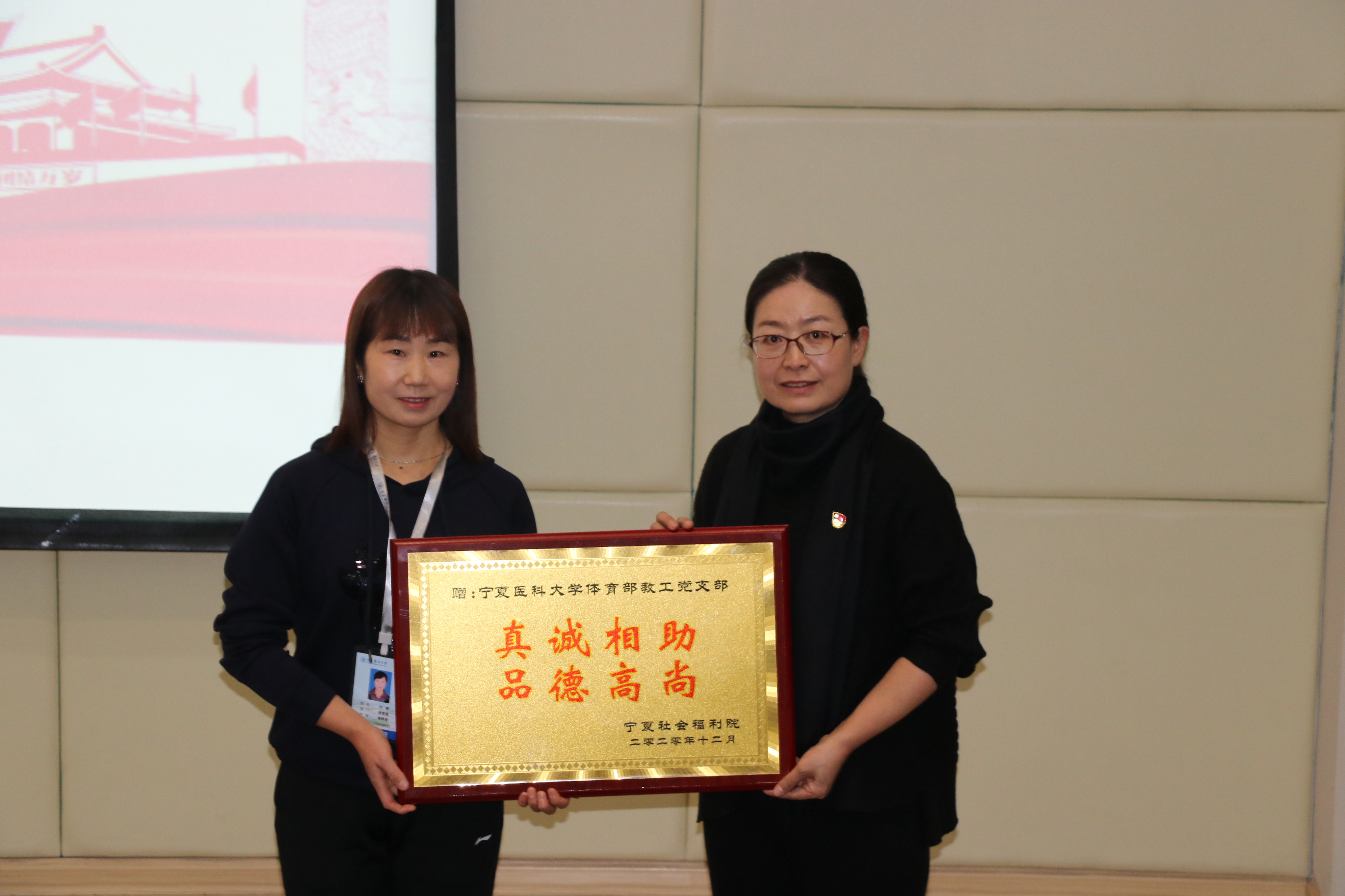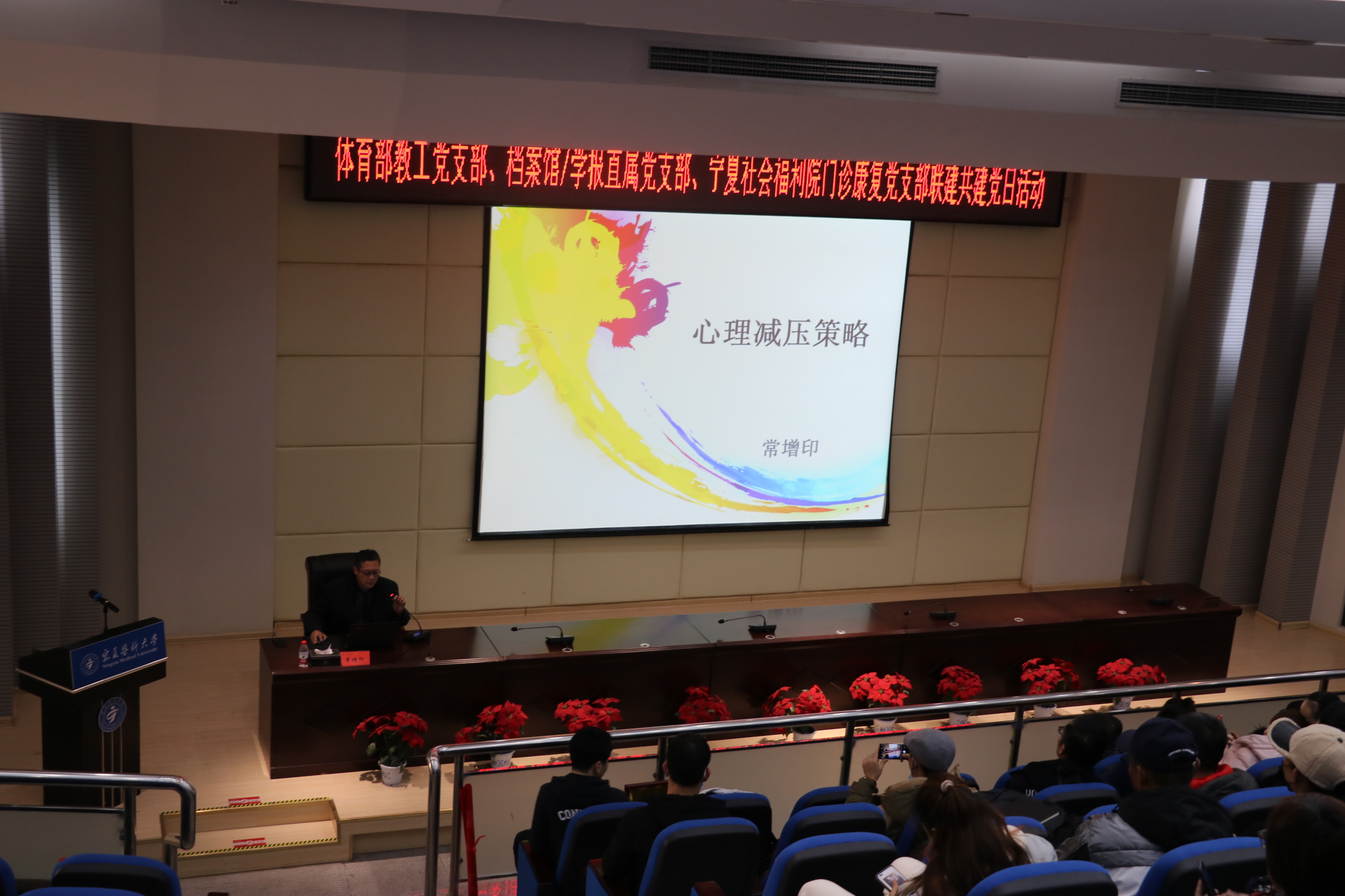 随后,在正德楼二楼会议室,宁夏社会福利院为澳门十大信誉好的网站体育部教工党支部赠送“真诚相助、品德高尚”牌匾,以感谢澳门十大信誉好的网站体育部教工党支部长期以来为宁夏社会福利院提供的党员志愿服务,并邀请宁夏民政厅民康医院精神病学主任医师常增印,为大家普及心理减压主题课程。