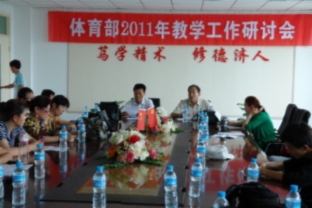 本学期的教学工作已结束,为了总结经验,更好地做好下学期的工作。体育部于2011年7月4日举办教学工作研讨会。会议传达了学校的有关文件。刘平老师对高职教学中存在的问题和改进方式提出了建议;吴飞燕老师介绍了自己的教学方法和经验;专业教研室副主任姚正宁对师资的现状和教学内容设置进行了发言;基础教研室主任展志明对下学期教学工作量进行了分配。潘春光副主任对本学期的教学工作进行了总结;黄少云主任从政治上要坚定跟党走,业务上要充分利用体育课教学这一特殊平台,进行教学和训练等方面,就进一步加强教师自身道德素质修养做了专题发言。