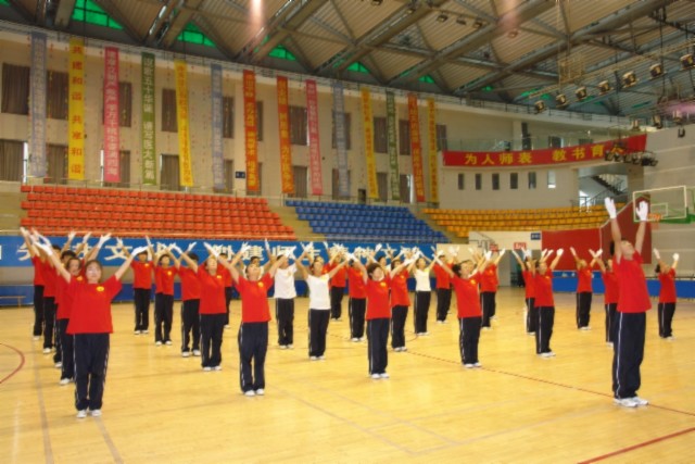 根据第五届全国亿万学生阳光体育(澳门十大信誉好的网站)活动方案的安排,体育部于2011年11月16-17日在体育馆举办了2011级学生广播操比赛。