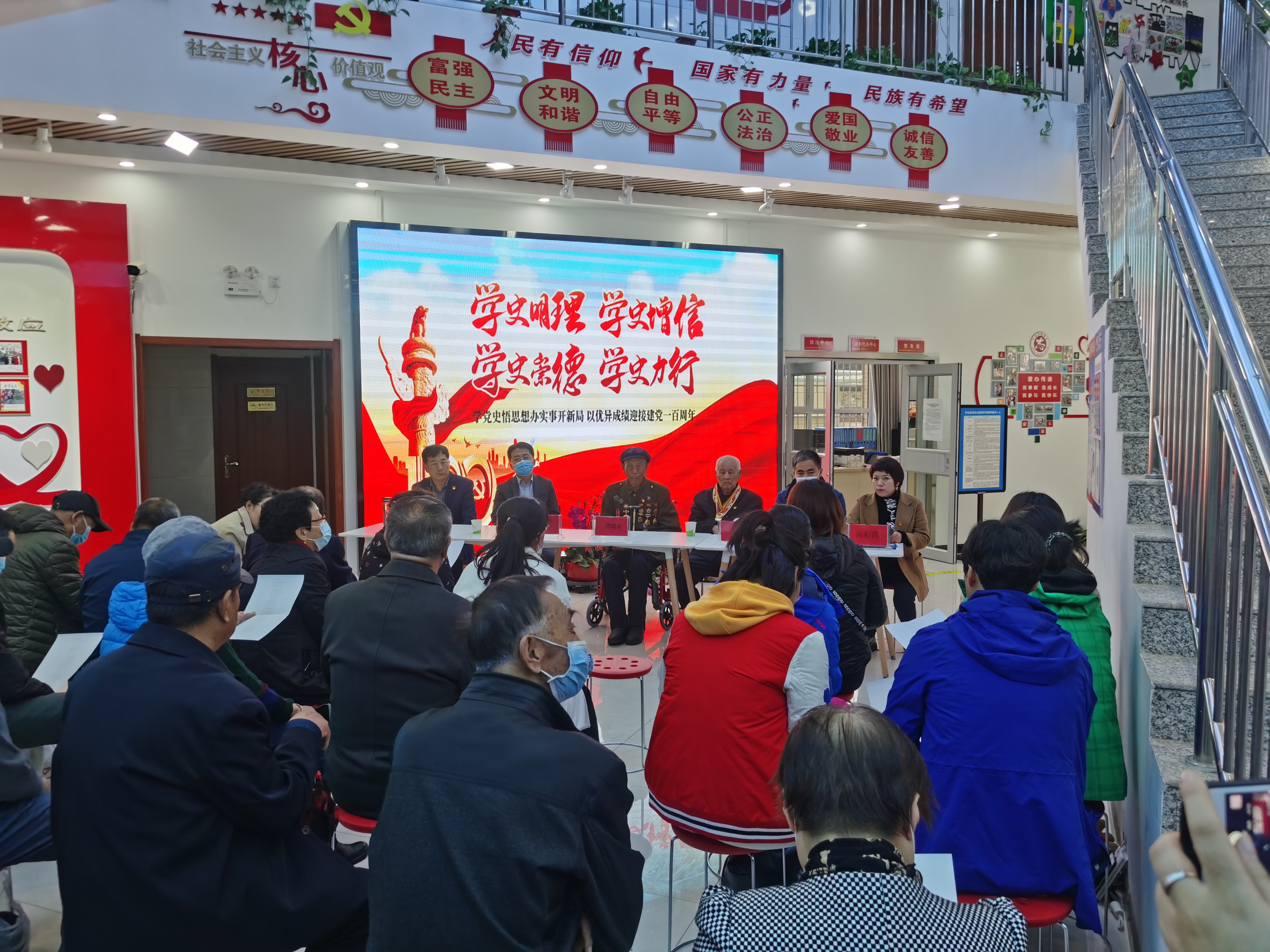 活动开始,分别由四名老兵为大家讲述自己和党的故事。103岁的老人谭德本,经历过长征,先后参加了抗日战争、解放战争和抗美援朝,他一生经历贯穿了党的革命史。党课上,老人深情回忆起当年的革命生涯:“1933年8月,我参加革命,曾经三过草地、两越雪山。长征路上,铺的是地,盖的是天,嚼草根、吃皮带。行军困难重重,眼睁睁看着自己的战友陷入沼泽地而无法营救。但无论当时条件多么恶劣,我都不畏强敌、不畏牺牲,因为我坚信,只有中国共产党才能救中国,只有中国共产党才能带领人民找到光明前景,过上好日子。”情到浓时,老人依稀潸然泪下。93岁的韩贵芳、91岁的王贵廷和80多岁的郭文宇,也为大家讲述了自己抗美援朝、辽沈战役和解放战争的亲身经历。
