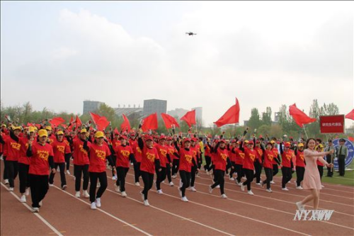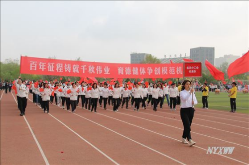 4月25日,“喜迎建党百年”学校第49届运动会在雁湖校区体育场隆重开幕。全体校领导,各职能部门、学院负责人及3000余名师生观看了开幕式。学校党委副书记朱建华主持仪式并宣布开幕。