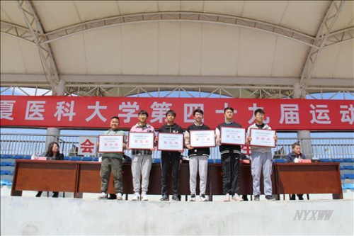 随着一百米预赛的枪响,正式拉开了竞赛项目的帷幕。在两天半的赛程中,来自各学院、分工会、教学实习医院的51支代表队,4000余名师生参加了56个项目的角逐,评选出优秀裁判员23人、优秀运动员36人,1200人取得名次受到表彰,获得学生团体总分前六名的分别是:临床医学院1队、临床医学院2队、中医学院、公共卫生与管理学院、药学院、护理学院(高等卫生职业技术学院)。临床医学院2020级杨涛同学以2分04秒20的成绩刷新了学校沉寂30年的男子800米记录,成为本届运动会的亮点。获得教工团体总分前六名的分别是:附属石嘴山市第二人民医院、附属石嘴山市第一人民医院、基础医学院分工会、第三临床医学院、附属自治区中医医院教辅、科研分工会。基础医学院、公共卫生与管理学院、护理学院、口腔医学院、理学院、国际教育学院被评为体育道德风尚奖。