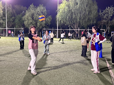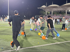 嘉年华以体育为桥梁,通过丰富多彩的赛事和趣味活动,为学生提供展示自我、挑战极限的平台,体现了“健康第一”的教育理念。现场精彩纷呈,3V3篮球赛热血对抗,足球趣味赛默契配合,5V5气排球赛攻防激烈,56分制羽毛球团体赛激情四射,乒乓球赛技巧迭出,身体素质拓展挑战耐力极限。此外,梅花桩平衡穿越、连环踢靶、沙包投掷考验力量与技巧;趣味跑、武术猜谜融合智慧与欢乐;健康体能挑战赛兼顾专业技能与体能素质;石榴籽拼图等活动则彰显出团结协作精神。同学们在竞技中挥洒汗水,展现青春风采与团队精神。