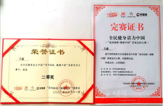 4月15日,由中华全国体育总会主办的全民健身活力中国“定向战役•健康中国”居家定向大赛圆满落幕。此次大赛由深圳市定向运动协会发起,中华全国体育总会主办、中国测绘学会项目指导、浙江省幼儿体育协会等全国70多家体育协会组织支持,70多万人次参与,由国内外5位国家级裁判组成的专家组进行了评审。