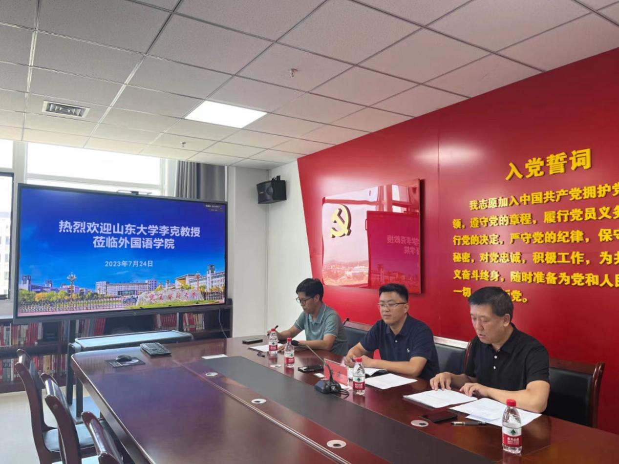 7月24日,外国语学院在知行楼810会议室举办“新时代外语学科建设”专题讲座。山东大学国际教育学院院长、翻译学院博士生导师、国家社科项目评审与结项鉴定专家李克教授应邀来院主讲。学院班子成员及全体教师通过线上和线下结合的方式参加,讲座由院长郝向利主持。