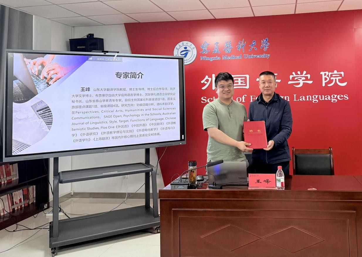 5月26日至29日,外国语学院柔性引进山东大学翻译学院王峰教授来院指导科研工作。王峰教授拥有同济大学文学博士与布鲁塞尔自由大学应用语言学博士学位,作为博士生导师、博士后合作导师、山东省泰山学者青年专家,主持国家级等各类项目,发表学术论文40余篇。