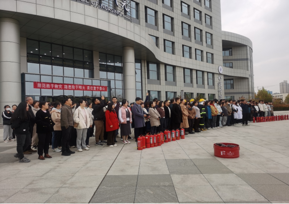 11月5日,保卫处联合护理学院、外国语学院、国际教育学院、马克思主义学院组织师生以“全民消防、生命至上——安全用火用电”为主题,在知行楼开展了消防安全培训和应急疏散演练,学校党委常委、副校长韩怀钦,兴庆区消防救援新华站官兵,师生共400余人参加活动。