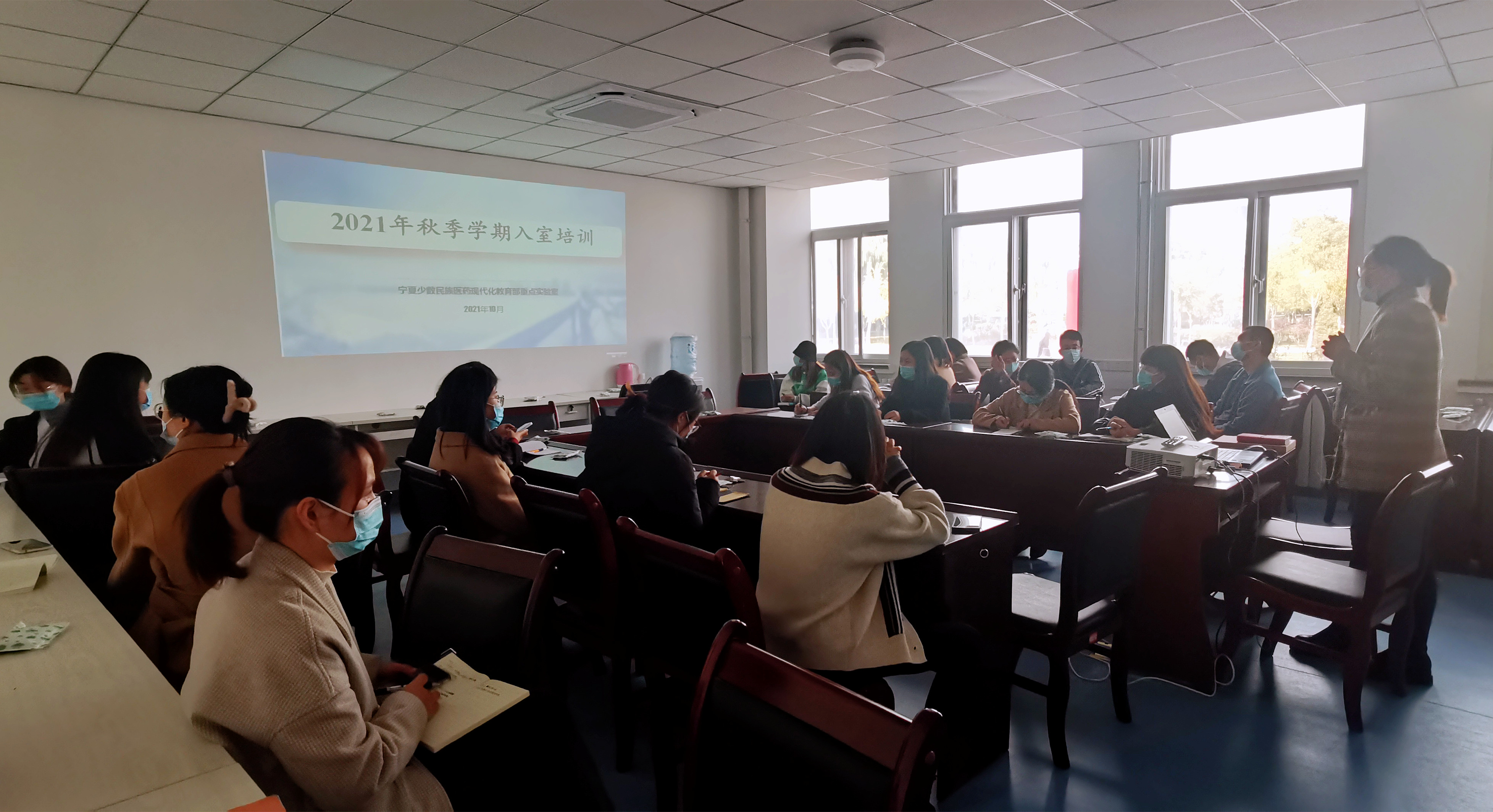 为做好新学期实验室服务管理,预防各类实验事故发生,确保实验室运行管理安全高效,10月26日下午,重点实验室在实验室自习室举行2021年度秋季学期实验室准入及安全培训工作。因疫情防控要求,本学期将分次培训,本次培训组织20名雁湖校区预入室研究生参与。