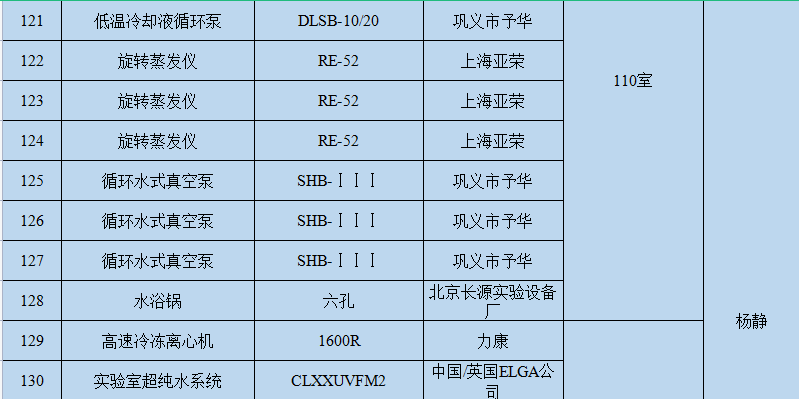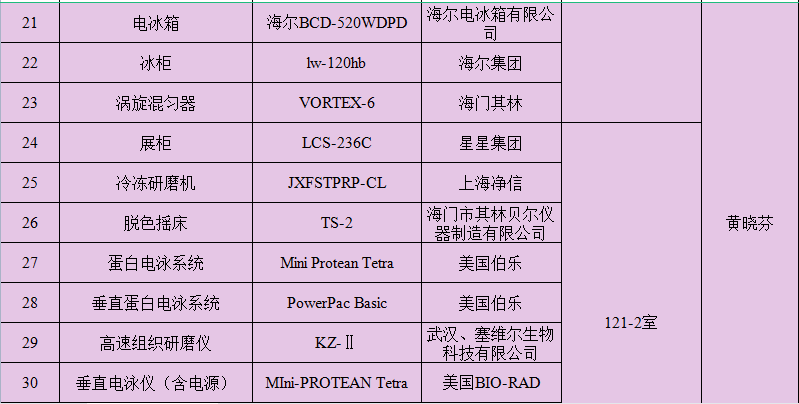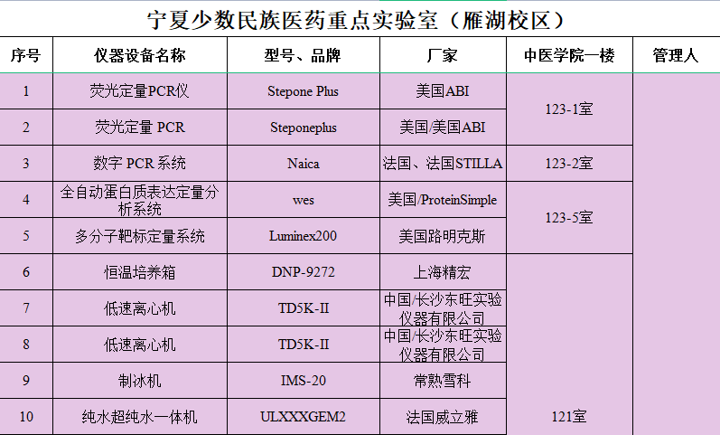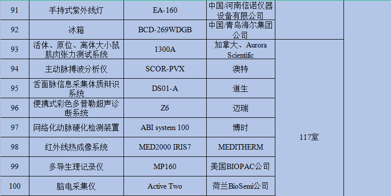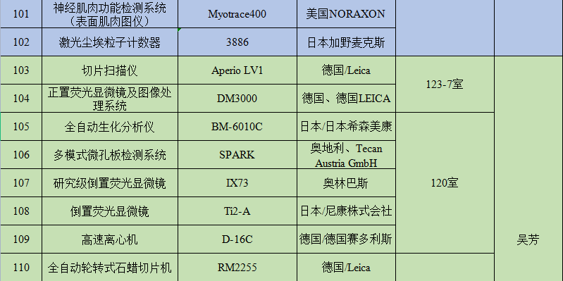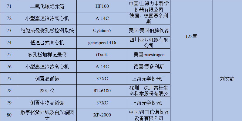 重点实验室主要仪器设备存放地点及管理员信息
