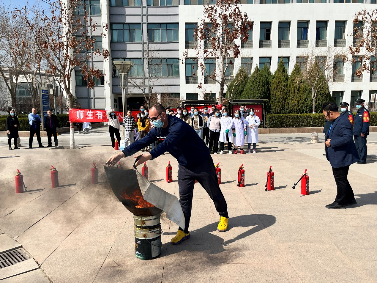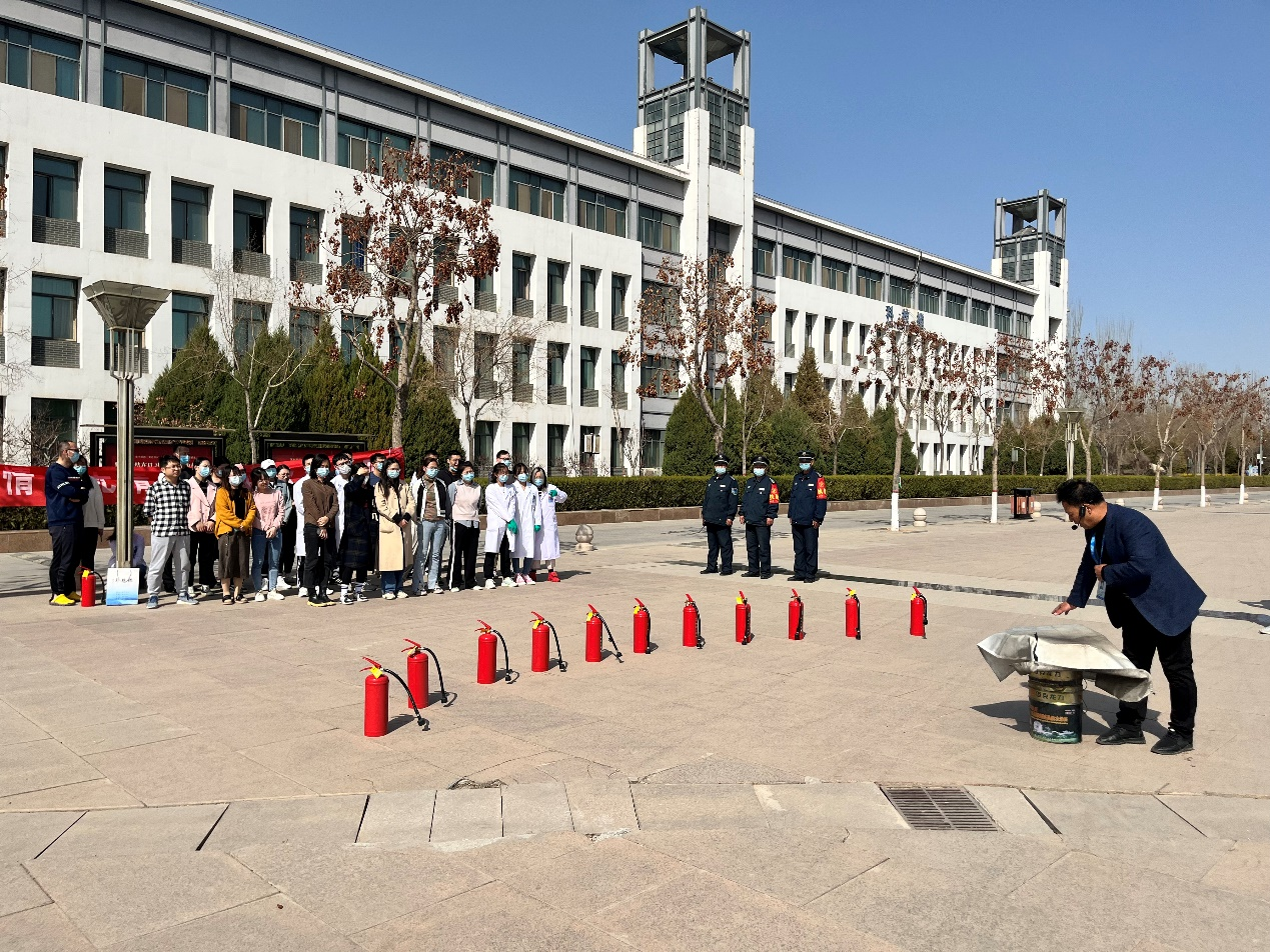 演练结束后,全体师生又参加了灭火器材使用培训。保卫处杨俊康老师详细地介绍了水基灭火器和灭火毯的使用方法,并进行了规范的演示。师生们认真学习,积极演练,进一步强化了灭火器材的使用技能。