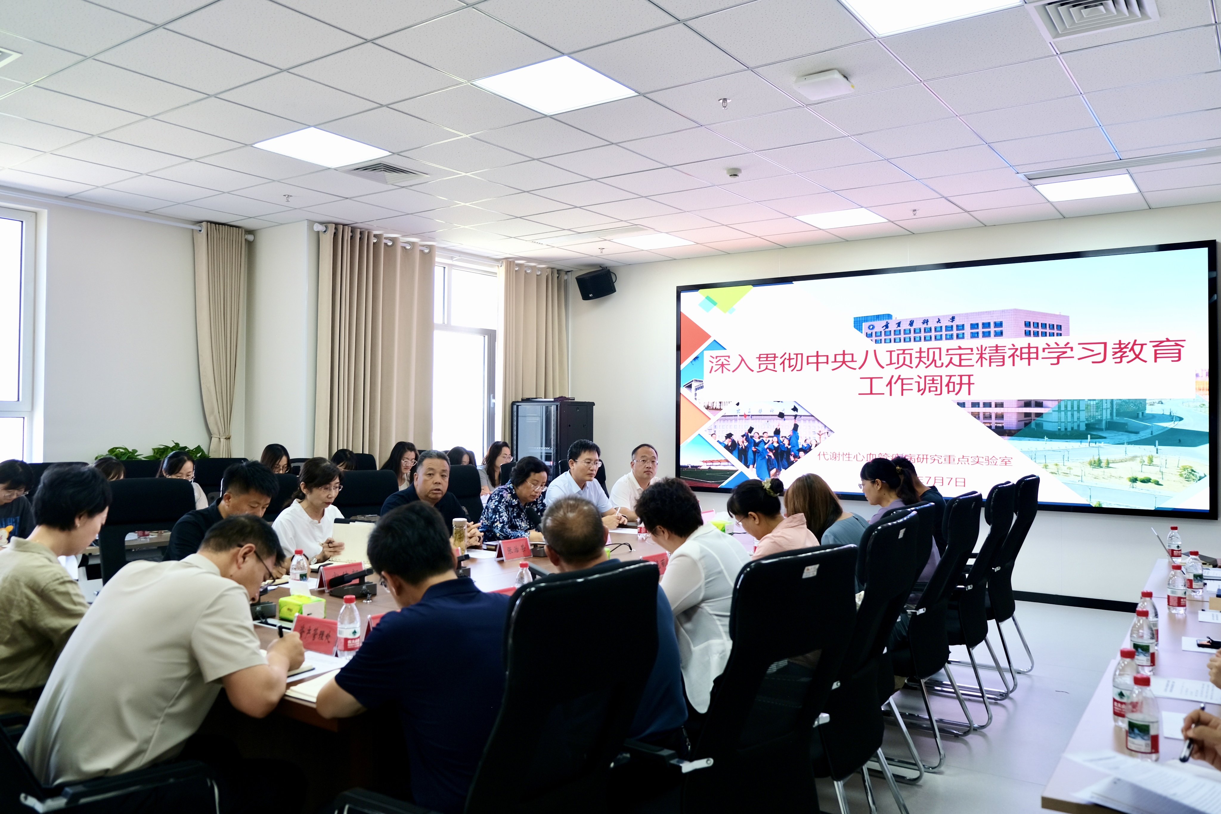 7月7日,学校党委书记张治荣一行到代谢性心血管疾病研究重点实验室开展深入贯彻中央八项规定精神学习教育调研。学校党委副书记邓彦芳,党委常委、组织部部长魏晋怡,办公室、宣传部、教师工作部、发展规划与学科建设处、科学技术处、资产管理处、研究生院、基础医学院、数智建设与管理中心、学习教育工作专班负责人,实验室全体教职工参加。