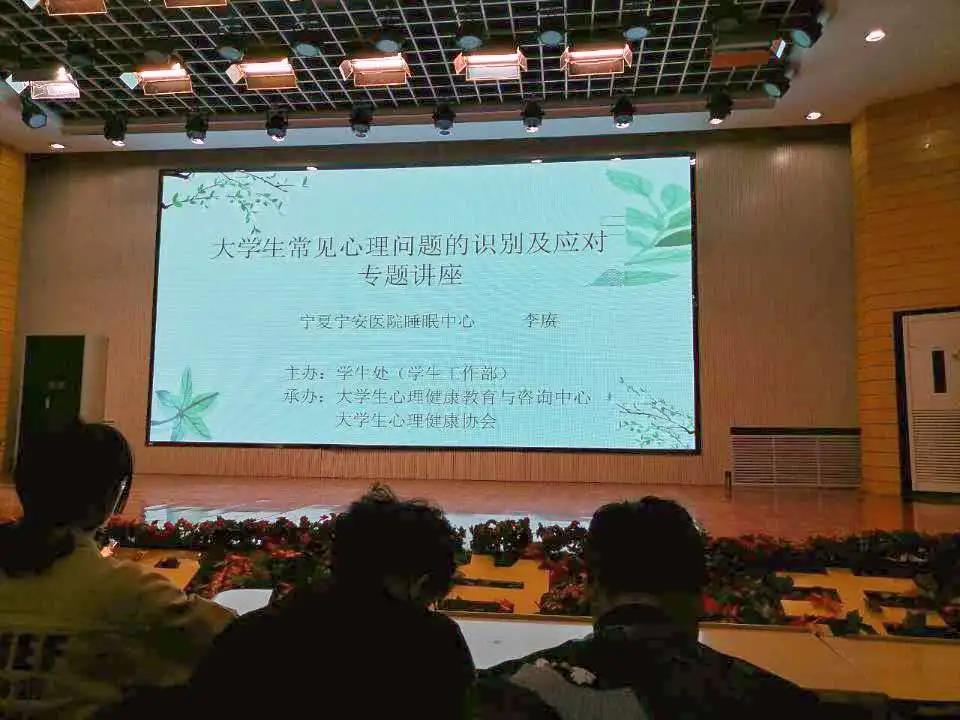 此次讲座由学生工作部主办、大学生心理健康教育与咨询中心和大学生心理健康协会承办。作为今年“5•25” 大学生心理健康教育月的第一场校级培训,中心特邀了宁夏宁安医院睡眠医学中心主任李赓作为主讲专家,各学院专职辅导员、学生朋辈咨询师、宿舍心理联络员代表参加了此次讲座。
