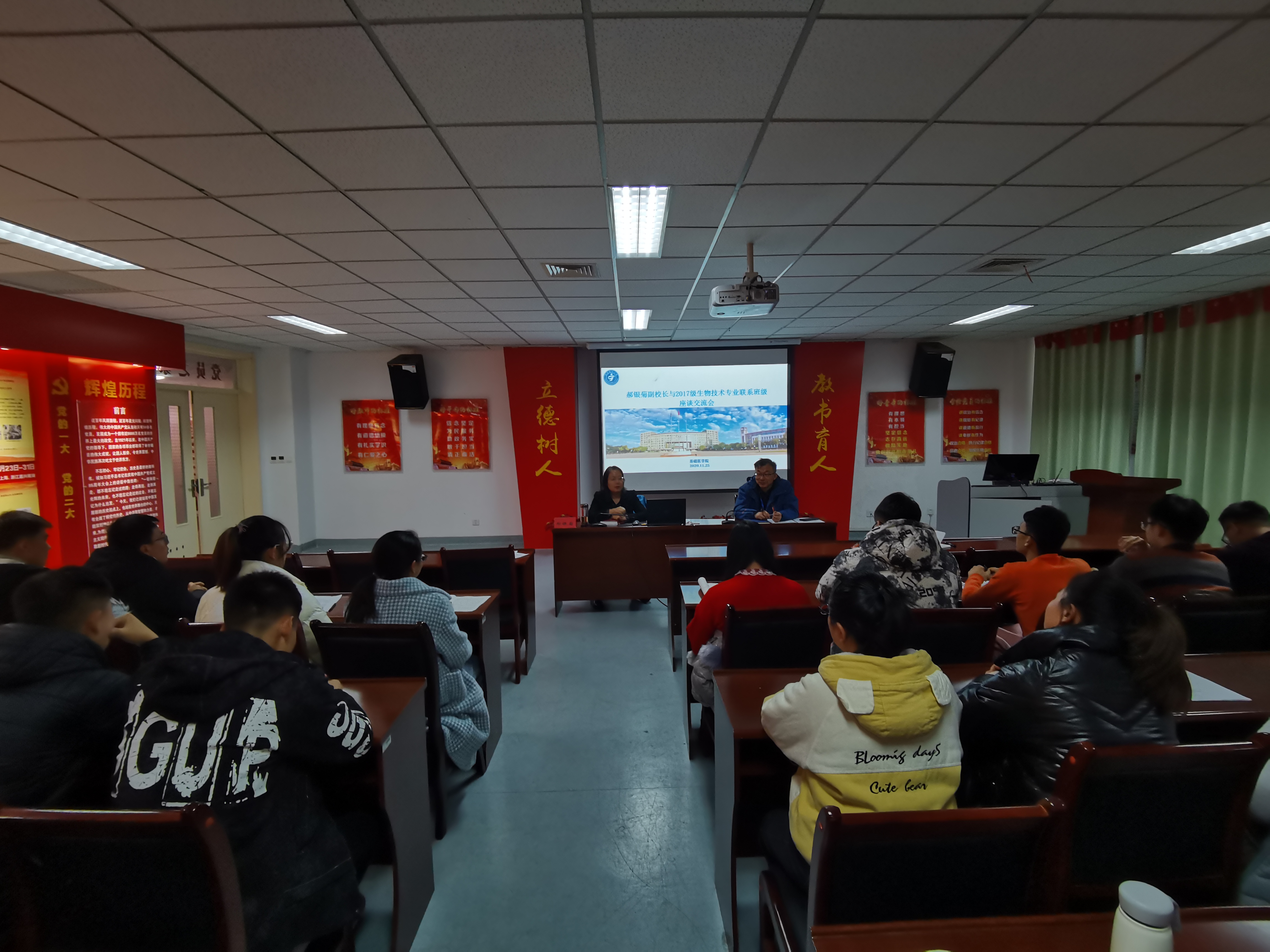 报告会结束后,郝银菊副校长又同自己所联系的2017级生物技术班同学进行了座谈交流,在听取了班级总体情况和部分同学提出的意见困惑后,她认真进行了回应,并嘱咐同学们“要树立远大理想,增强信心;要脚踏实地,勤于学习;要合理安排时间,加强锻炼;要怀揣家国情怀,把个人的追求融入到国家和民族事业中去,通过努力实现自己的人生价值。
