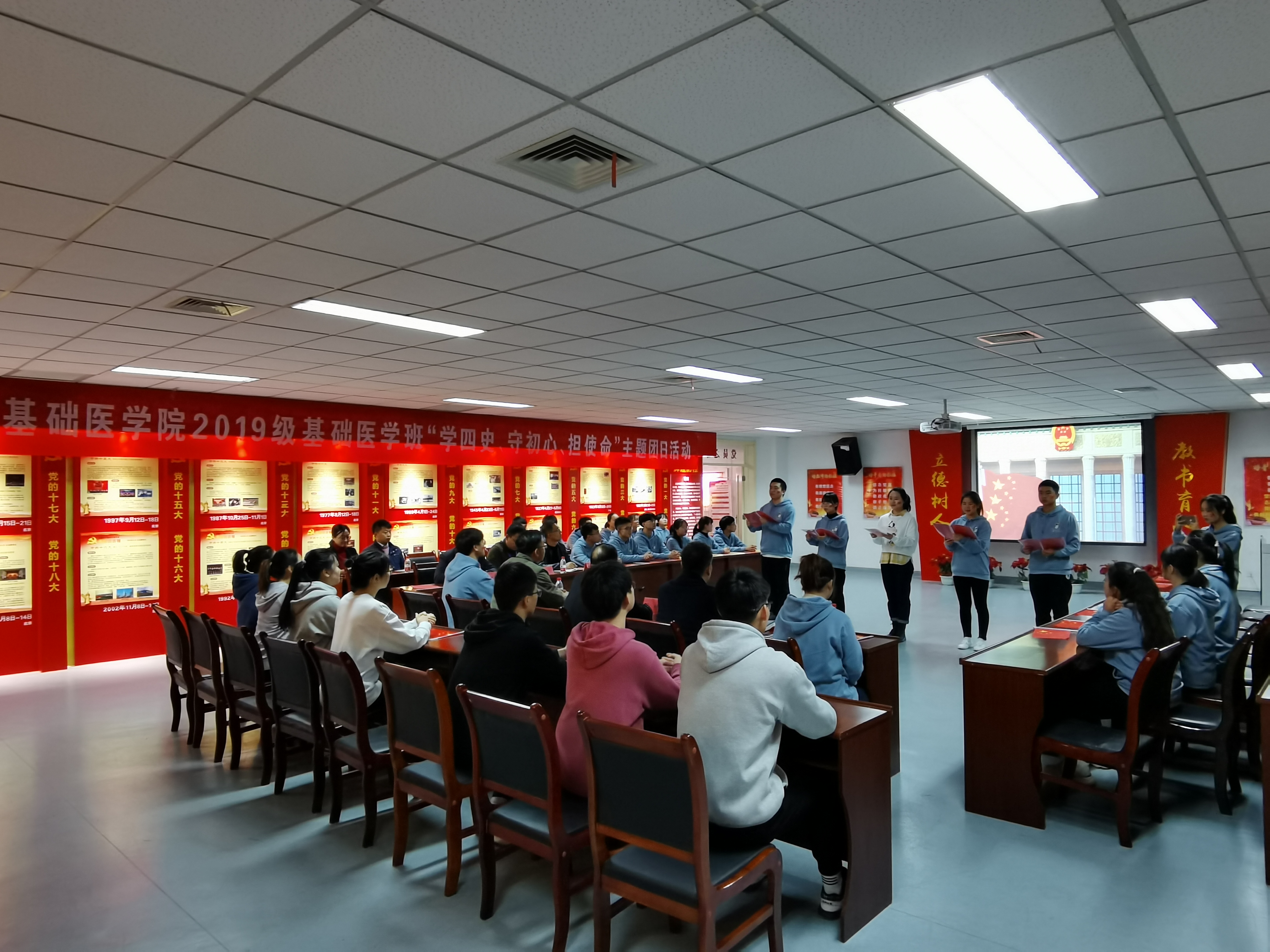 11月30日上午,为迎接中国共产党建党100周年,进一步丰富“四史”学习教育的内容和形式,持续深化爱国主义教育,基础医学院2019级基础医学班在厚生楼三楼党员之家开展“学四史、守初心、担使命”主题团日活动。学校党委书记马林、学校相关部门负责人、基础医学院党政班子成员、辅导员及研究生代表共同参加了活动。