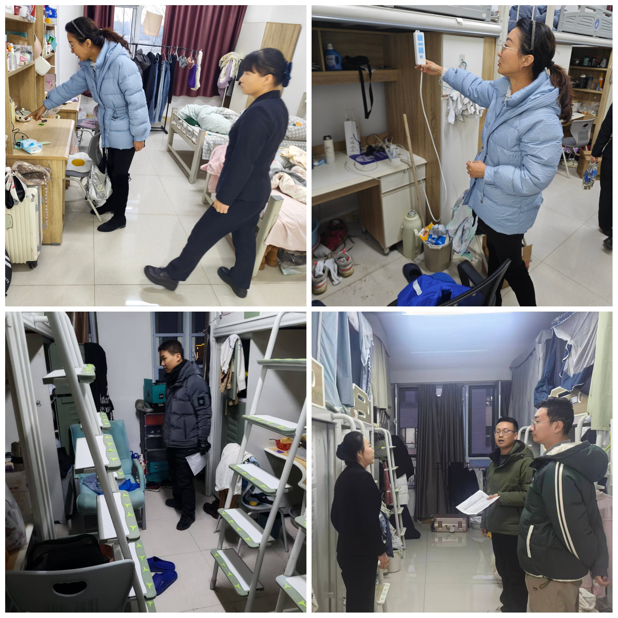 为进一步加强学生安全教育与管理,12月29日下午,基础医学院专职组织员李菲带领专兼职辅导员,分赴双怡、雁湖两校区学生公寓开展安全隐患排查工作。重点围绕宿舍安全用电、假期离校注意事项等开展安全教育,提醒同学们增强安全意识,确保校园生活平稳有序。