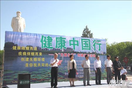 5月31日是第30个世界无烟日,今年世界无烟日的主题是“无烟•健康•发展”。5月26日上午,十大信誉校友会联合中卫市卫生和计划生育局主办的2017健康中国行——“无烟生活”创建倡导活动在中卫市红太阳广场举行。学校领导马林、孙涛、张建中,中卫市人大常委会副主任李铁路、副市长蔡菊、政协副主席付成林、政府副秘书长巩中升、卫生和计划生育局局长田风才、副局长尹鹏睿以及来自中卫市相关行业的代表参加了启动仪式。启动仪式由学校副校长、校友会秘书长张建中主持。