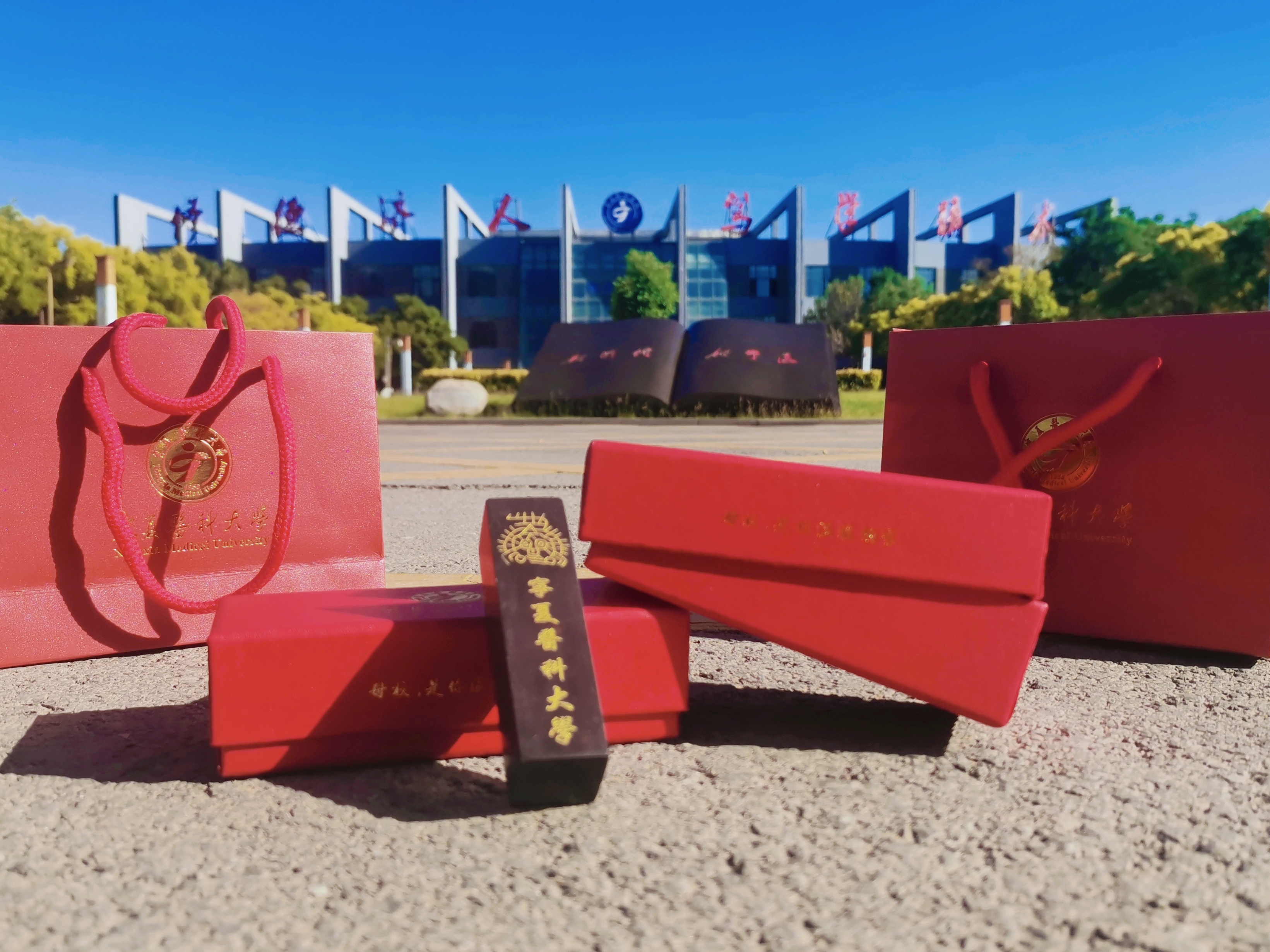 红色的手袋和礼盒刻有宁医校徽,寓意着红彤彤的希望,礼盒之中是为每一位毕业生所准备的特别礼物——贺兰石专属印章,上面不仅刻有毕业生自己的名字,还刻有宁医校训:“修德济人、笃学精术”。疫情可以阻挡的我们脚步,但无法阻挡母校对每位毕业生的爱与祝福。方寸承情怀,薪火相传继,小小印章篆写着青春岁月,教诲如铭,錾刻入心。