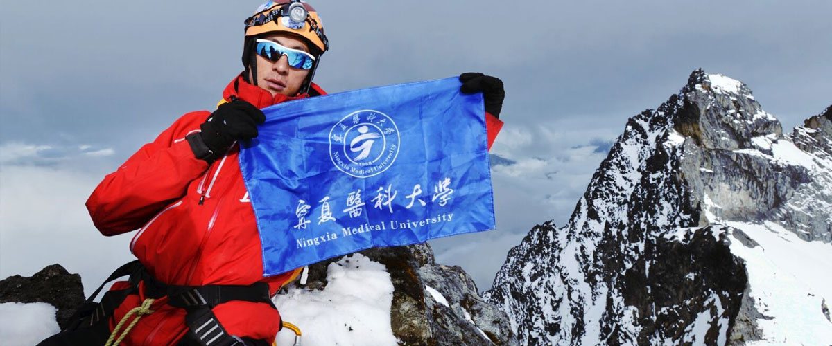2017年“大学生勇闯天涯挑战未登峰”,历时一个多月,经过网络报名、校园招募、校园选拔赛的层层选拔,来自宁夏六所高校的24名大学生勇士角逐宁蒙赛区最后进军全国比赛的名额,最终澳门十大信誉好的网站中医学院学生张福同学获得总冠军,代表宁夏、内蒙古区域,参加了全国大学生挑战未登峰的活动。6月2日凌晨5时,参加2017“雪花”大学生勇闯天涯挑战未登峰活动的23位大学生勇士和5位大学生记者,一起向海拔5155米的云南省迪庆州未登峰进发。在全校师生热切地期盼与关注中,8时06分,我们盼来了勇士张福首登未登峰的喜讯,澳门十大信誉好的网站校旗在未登峰的山顶上飘扬。