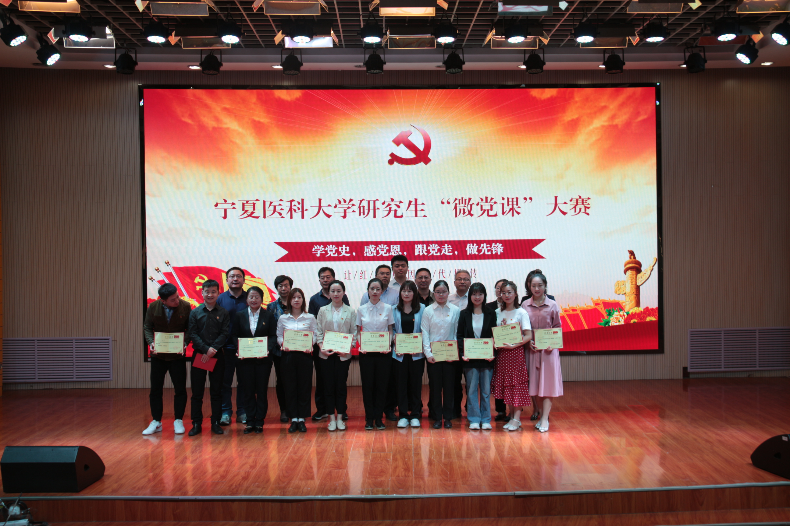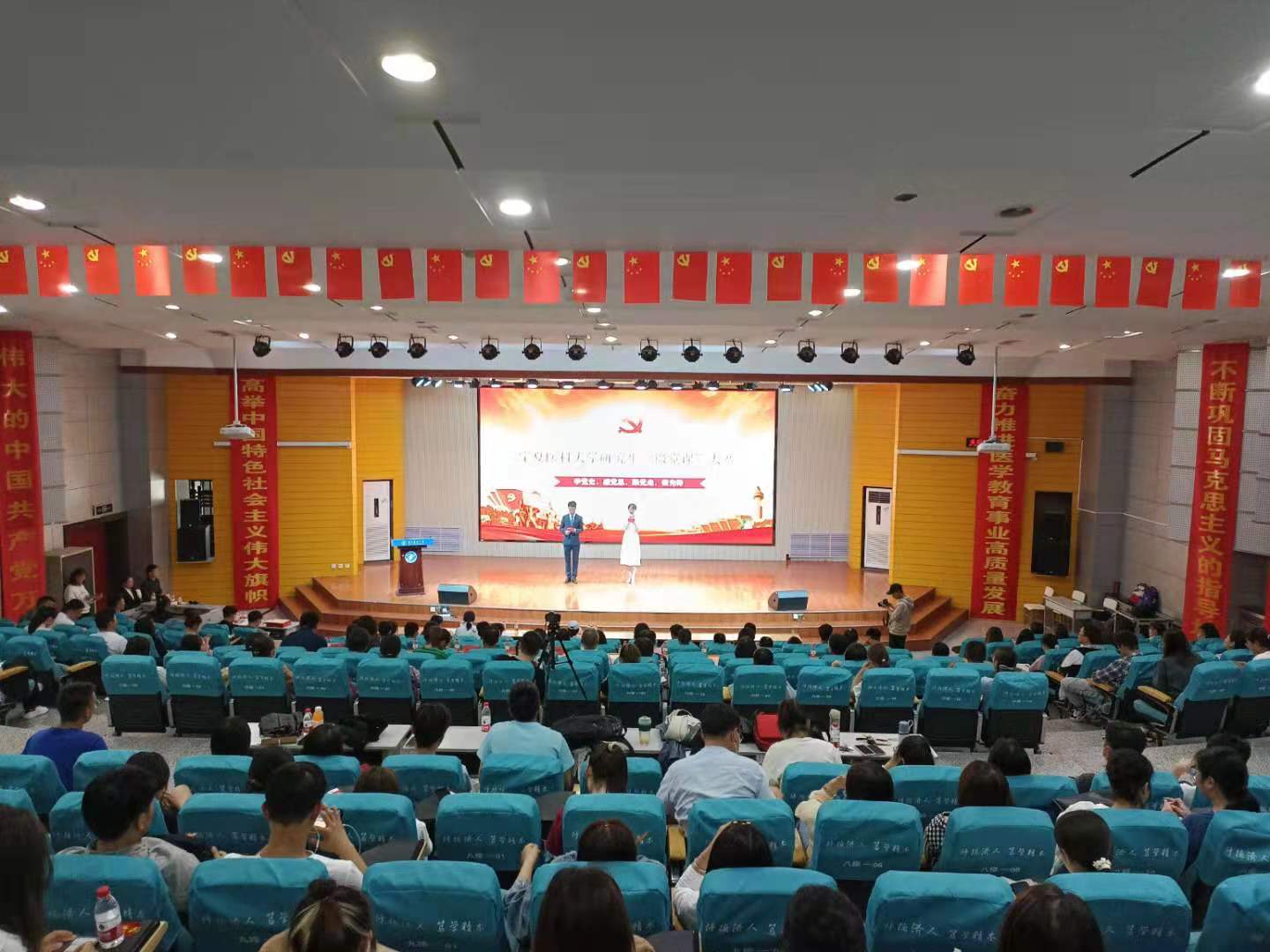 为深入推进党史学习教育走深走实,引导广大研究生学史明理、学史增信、学史崇德、学史力行,把个人理想融入时代主题,汇入复兴伟业,坚定不移听党话、跟党走,勇做担当民族复兴大任的时代新人,由研究生院(研究生工作部)主办、中医学院承办的“学党史、 感党恩、跟党走、做先锋”研究生微党课大赛于2021年5月26日在启思学术报告厅隆重举办。学校党史学习教育第二巡回指导组、研究生院、各培养单位负责研究生工作的党政领导及研究生辅导员和研究生代表参加本次活动。
