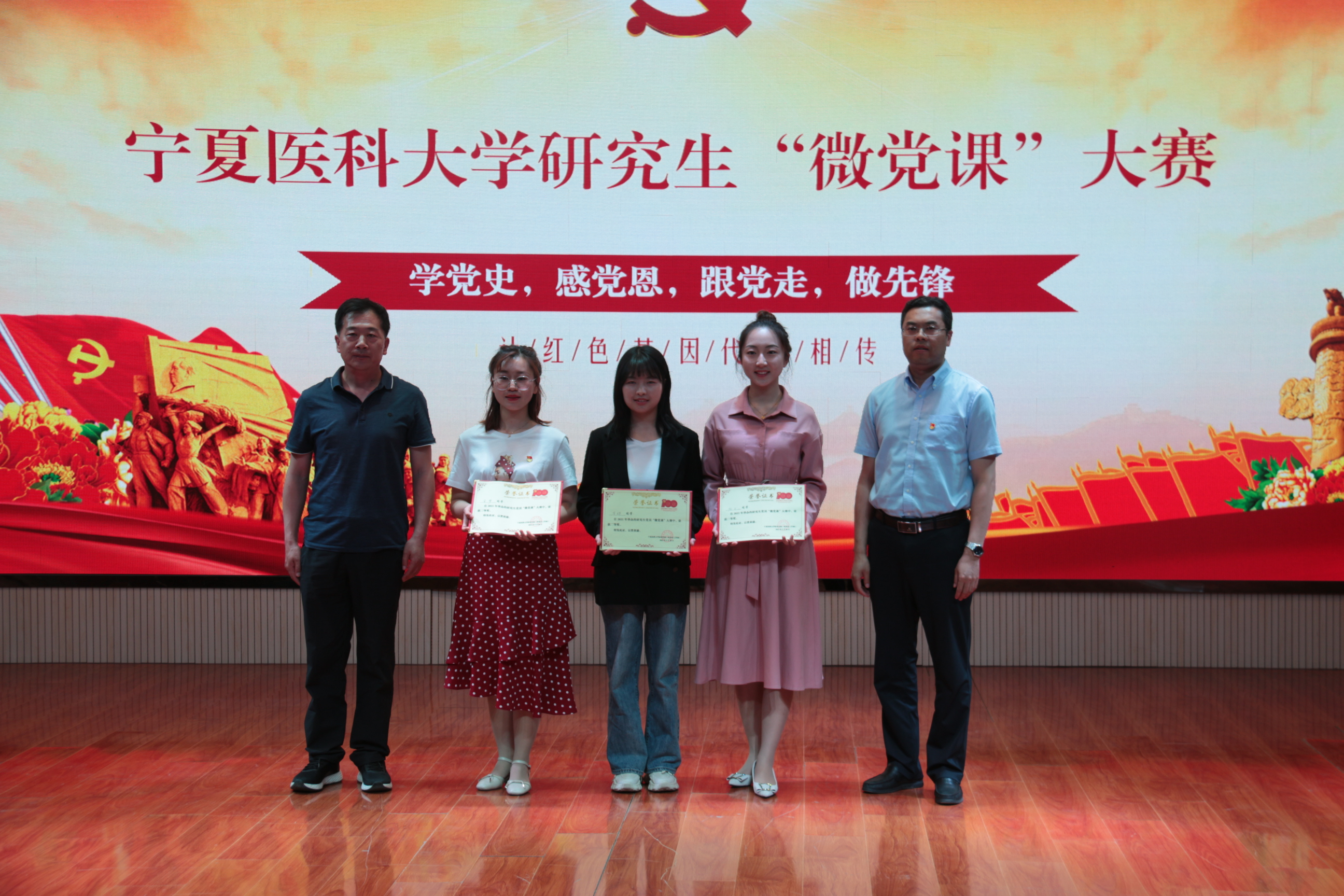 参赛研究生党员分别通过回顾自己的求学路、讲述红军长征中5000大洋的故事、围绕《山海情》解析脱贫攻坚的伟大胜利、从南湖红船精神到长征精神、从百年前的共产党人高举马克思主义旗帜到今天的沧桑巨变等内容,带领大家重温中国共产党百年峥嵘岁月,深刻感受党带领中国人民不断取得的举世瞩目的成就,经评委现场评分,最终基础医学院博士研究生王贺颖讲述的微党课《红船永恒,初心依旧》获得一等奖,护理学院陈可心等3名研究生党员的微党课获得二等奖,中医学院李薇等5名研究生党员的微党课获得三等奖,其他参赛研究生获得优秀奖。