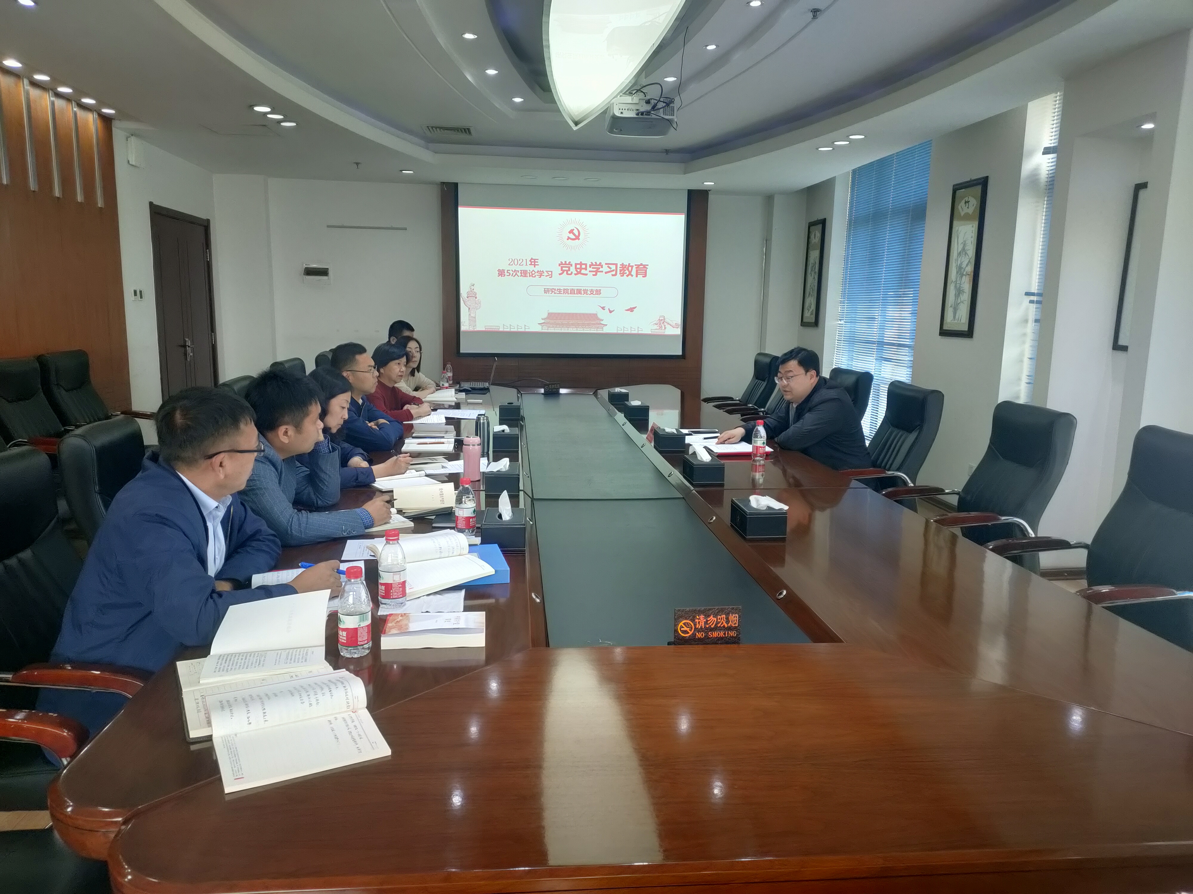 与会同志认真学习了《论中国共产党历史》和《毛泽东邓小平江泽民胡锦涛关于中国共产党历史论述摘编》部分章节内容,徐方同志做了《学思践悟,推动十大信誉研究生评价的改革》交流发言,张海峰同志汇报了研究生院直属党支部党史学习教育情况,并对下一步党史学习教育工作做了部署。