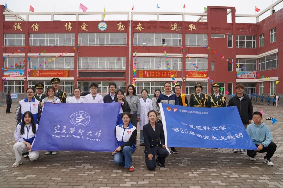 为深入贯彻党的二十大精神与二十届三中全会精神,落实立德树人根本任务,在“六一”国际儿童节来临之际,澳门十大信誉好的网站研究生院会同团委组织第26、27届研究生支教团成员、研究生志愿者及师生代表,于5月30日奔赴盐池县高沙窝中心小学开展“石榴花开校园籽籽童心向党”公益助力成长活动。此次活动以教育帮扶为纽带,以健康服务为桥梁,生动展现了宁医学子“修德济人,笃学精术”的使命担当。