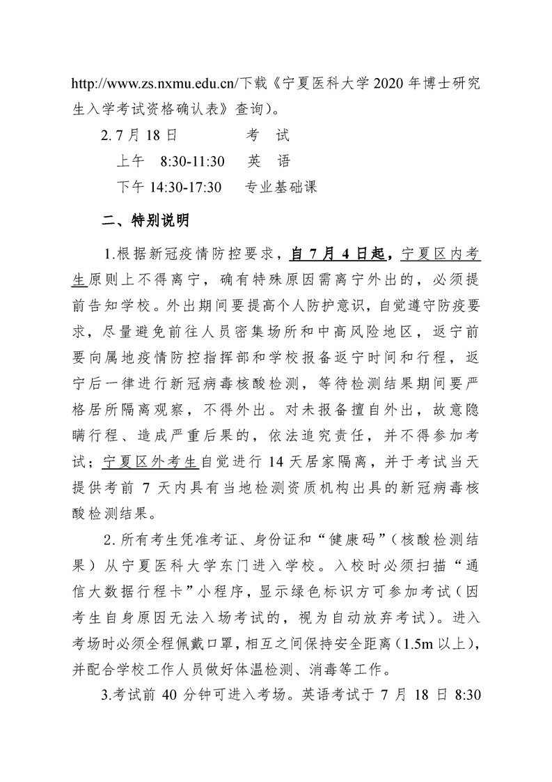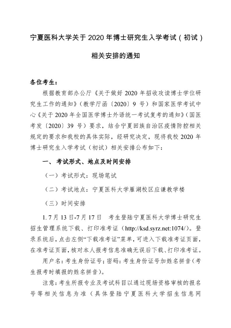 关于2020年博士研究生入学考试(初试)相关安排的通知