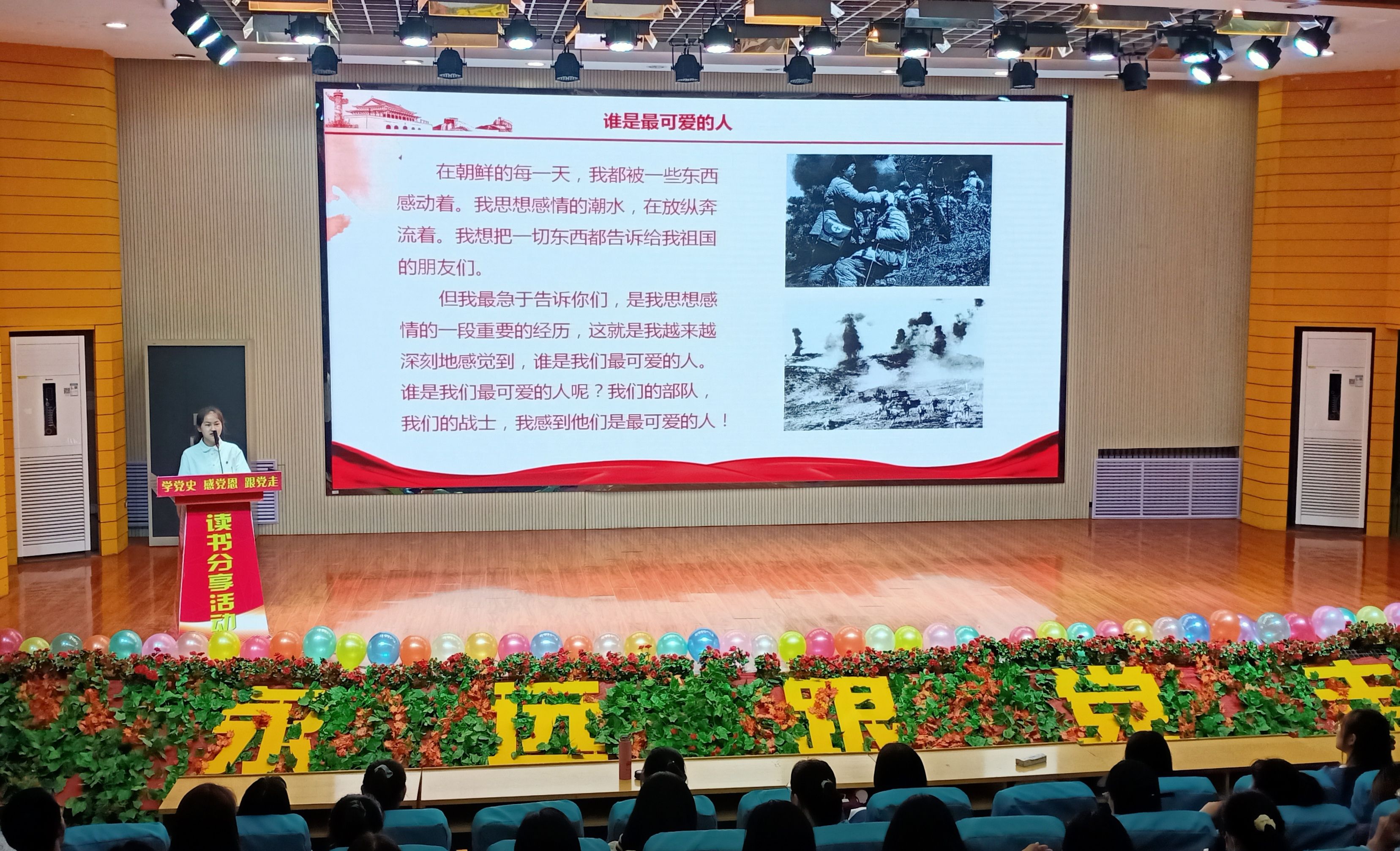 阅读一本好书 分享一段感动。10名同学分别分享了《青春之歌》、《谁是最可爱的人》、《中国共产党简史》、《平语近人》、《云边有个小卖部》、《平凡的世界》等图书,分享活动中间还穿插进行了党史知识竞赛,大家你争我夺,重温党的知识,增强了学习的自觉性和主动性。