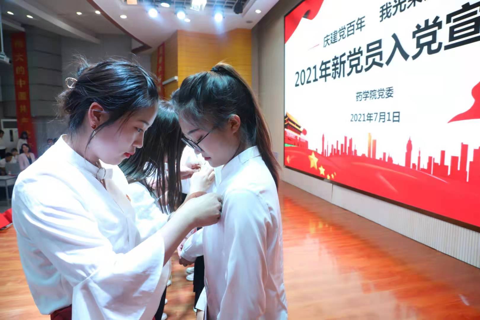 为增强党员政治意识,坚定理想信念,7月1日下午,药学院党委在教学楼启思学术报告厅举办新党员入党宣誓仪式,学院领导、学生党支部书记以及本专研学生党员和入党积极分子200多人参加了本次入党宣誓仪式。