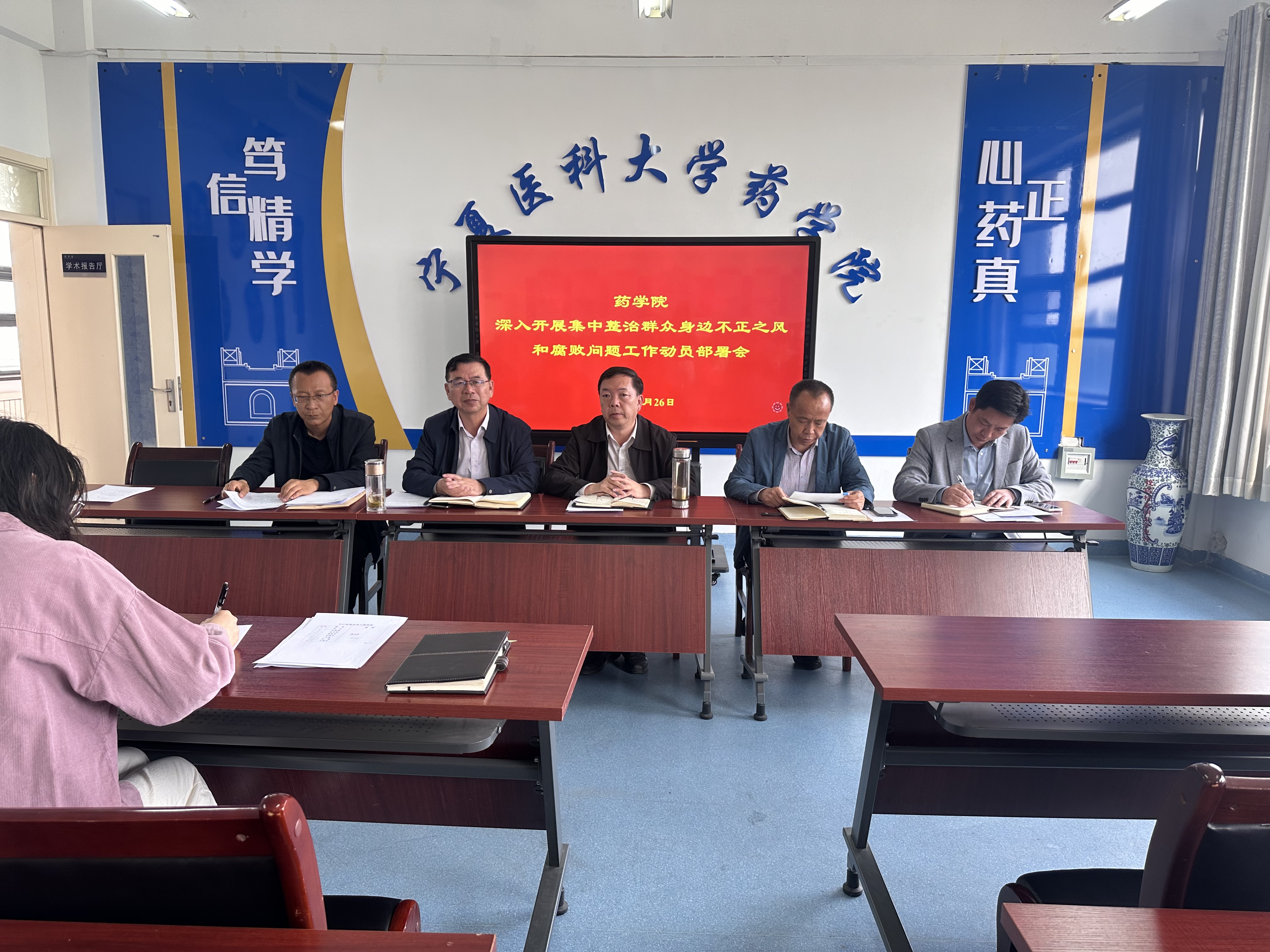 4月26日,药学院召开深入开展党纪学习教育推进会暨集中整治群众身边不正之风和腐败问题工作动员部署会。学院全体教职工参加。