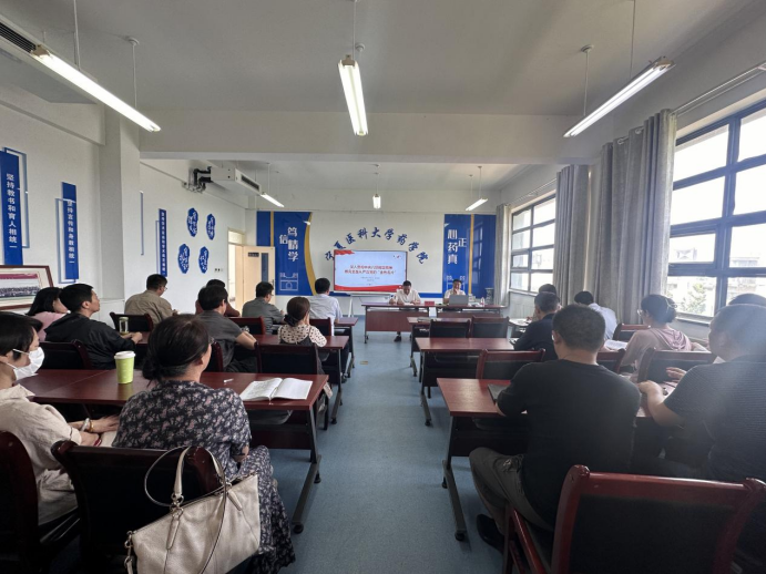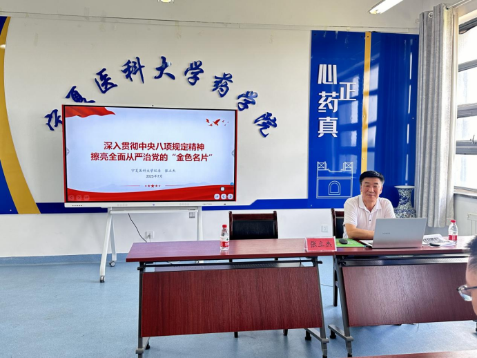 7月11日,学校党委常委、纪委书记、监察专员张立杰以“深入贯彻中央八项规定精神,擦亮全面从严治党的‘金色名片’”为题,为药学院全体教工党员讲授专题党课。学院领导班子成员、教师党员等60余人到场聆听。