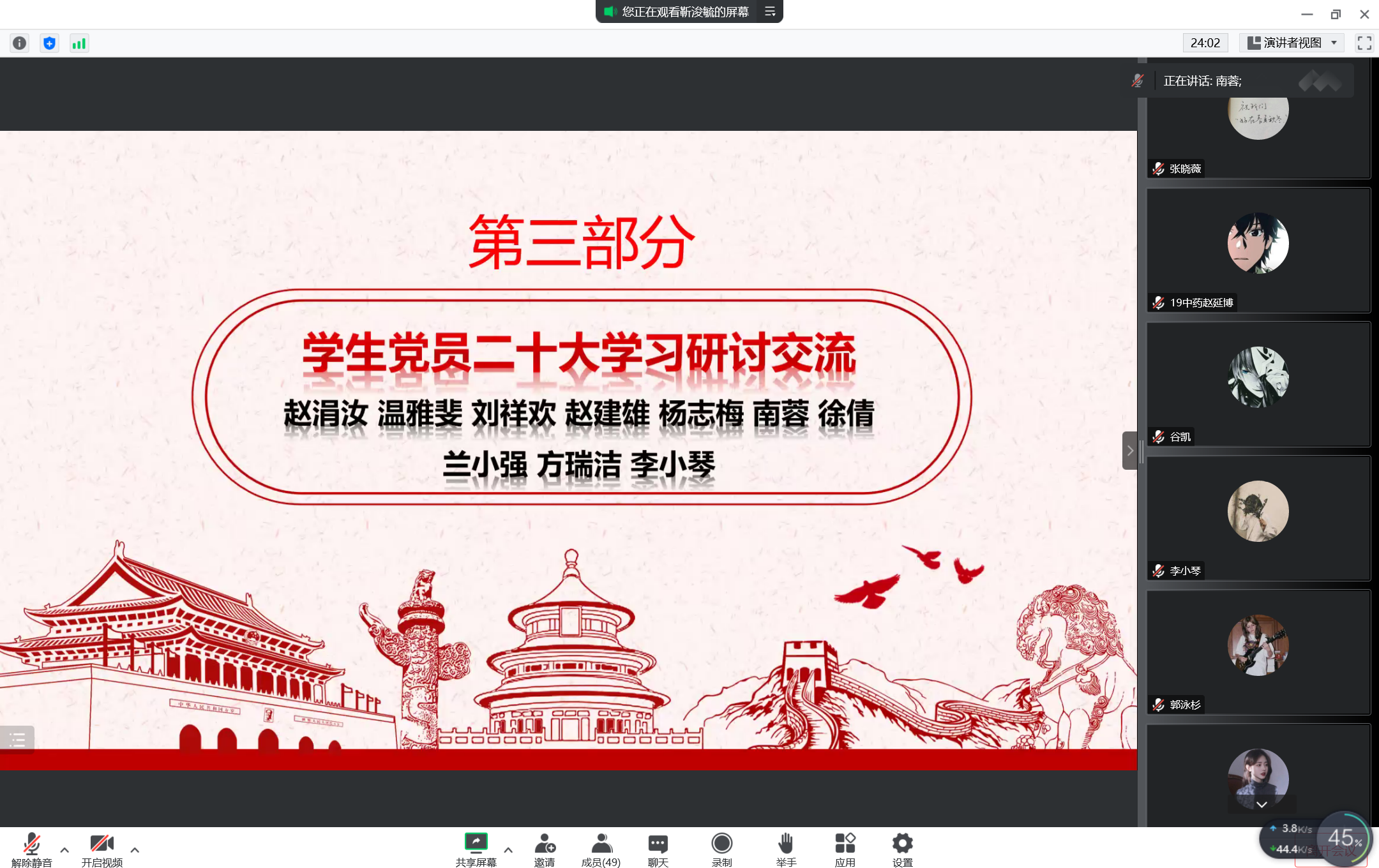 支部党员集中学习党的二十大报告、习近平总书记在参加党的二十大广西代表团讨论时的重要讲话和在中共中央政治局第一次集体学习时的重要讲话精神,赵涓汝、温雅斐、刘祥欢等10名党员同志分享二十大精神学习心得。