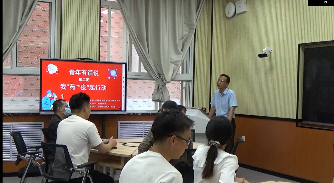5月19日下午,药学院在双怡校区教学楼16教室开展研究生思政课堂 “青年有话说”第二期——我“药”“疫”起行动。学院党委副书记魏银军、教学名师彭晓东教授等师生代表30余人参加。