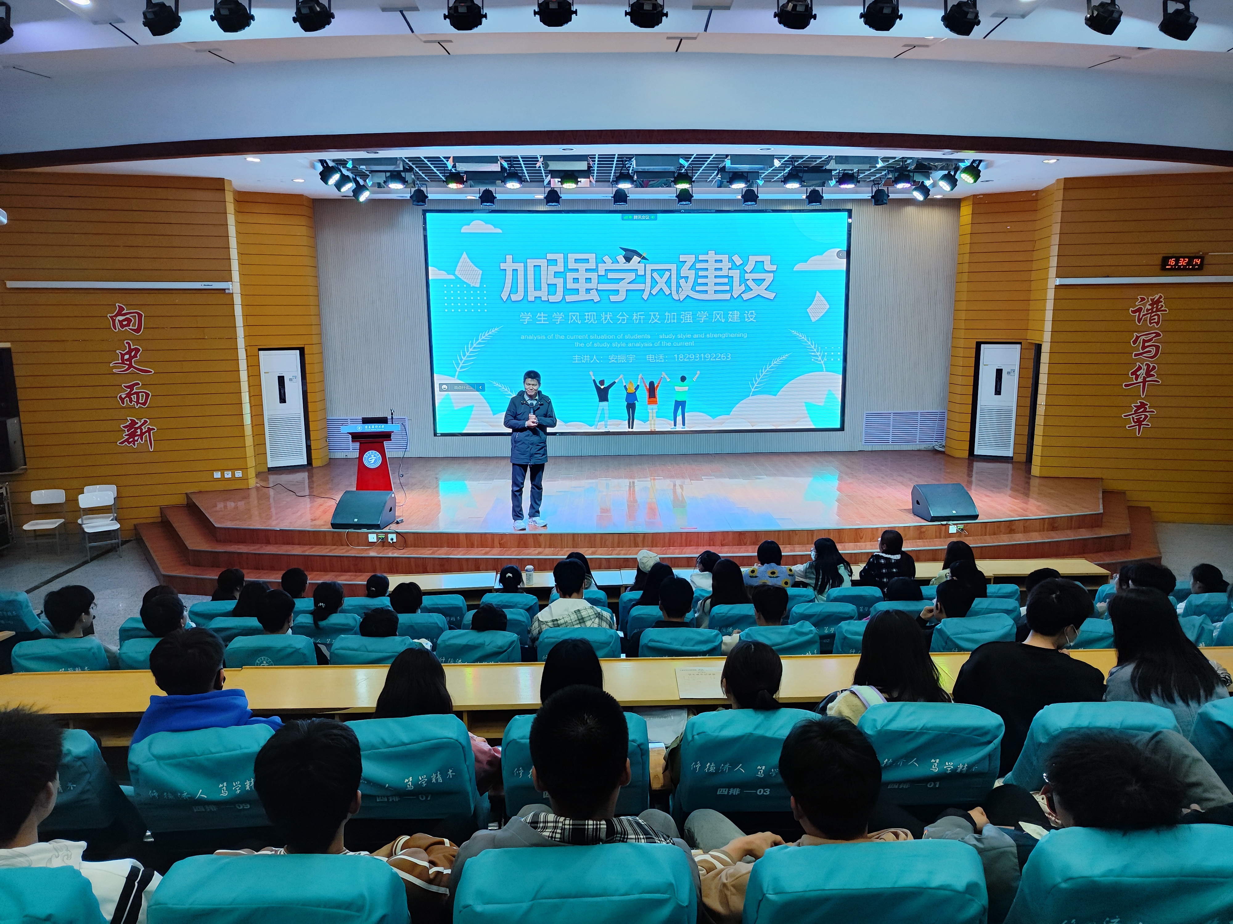 安振宇以“加强学风建设”为主题,围绕学风的内涵、现状等方面进行讲授,他讲到,大学生活不同于高中生活,希望大家全面发展,培养自我控制能力,掌握适合自己的学习方法,不断完善自己。安振宇还结合自身经历,分享了考研的相关注意事项,鼓励同学们提早规划,早做准备。