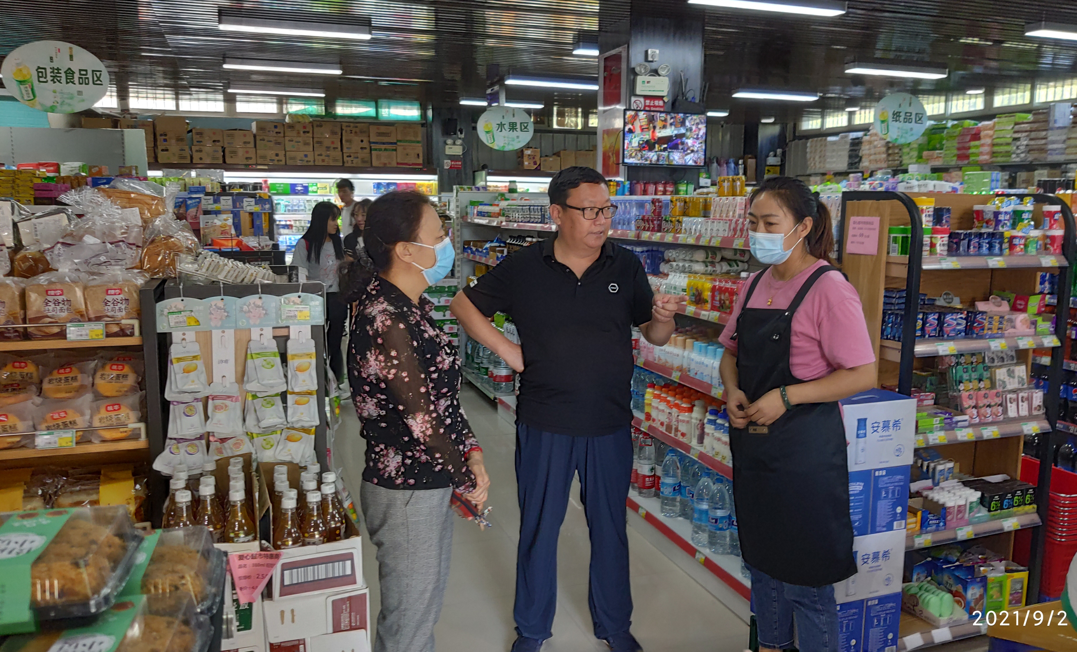 随着开学临近,为确保学生购物安全有序,2021年8月27日资产管理处检查组对校园内商铺进行了商品质量安全检查,督促商户落实疫情防控各项措施、保障开学学生用品供应。